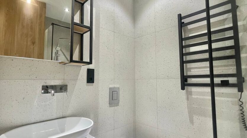 Квартира повністю укомплектована всіма необхідними меблями та технікою для проживання. Є простора гарна вбиральня. Стильна кухня, вбудована мікрохвильова піч, духовка, холодильник, витяжка. плити. Є пральна та посудомийна машина, кондиціонер. Зроблено ремонт з актуальним дизайном. Інтер’єр квартири оформлений у стилі мінімалізму. Вікна виходять на внутрішній двір. Є просторий балкон, який можна обладнати під відпочинкову літню зону. Є паркінг. Розвинена інфраструктура. Поруч — траса здоров’я, Аркадійські пляжі, супермаркети, ТРЦ, ресторани та парк. Зручна транспортна розв’язка.